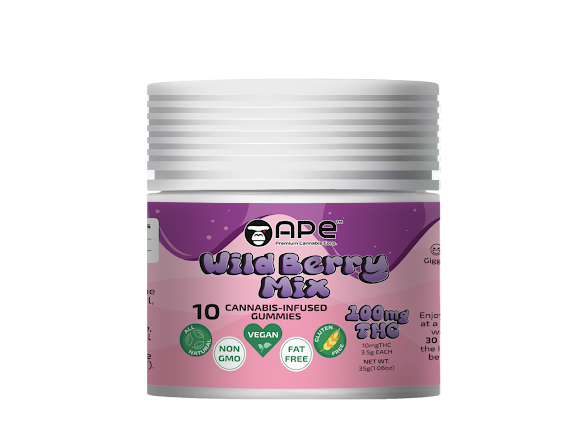 Wild Berry Mix – 100mg Gummies by APE are available exclusively at MetroBud—NYC’s trusted dispensary for high-quality cannabis edibles and more.
